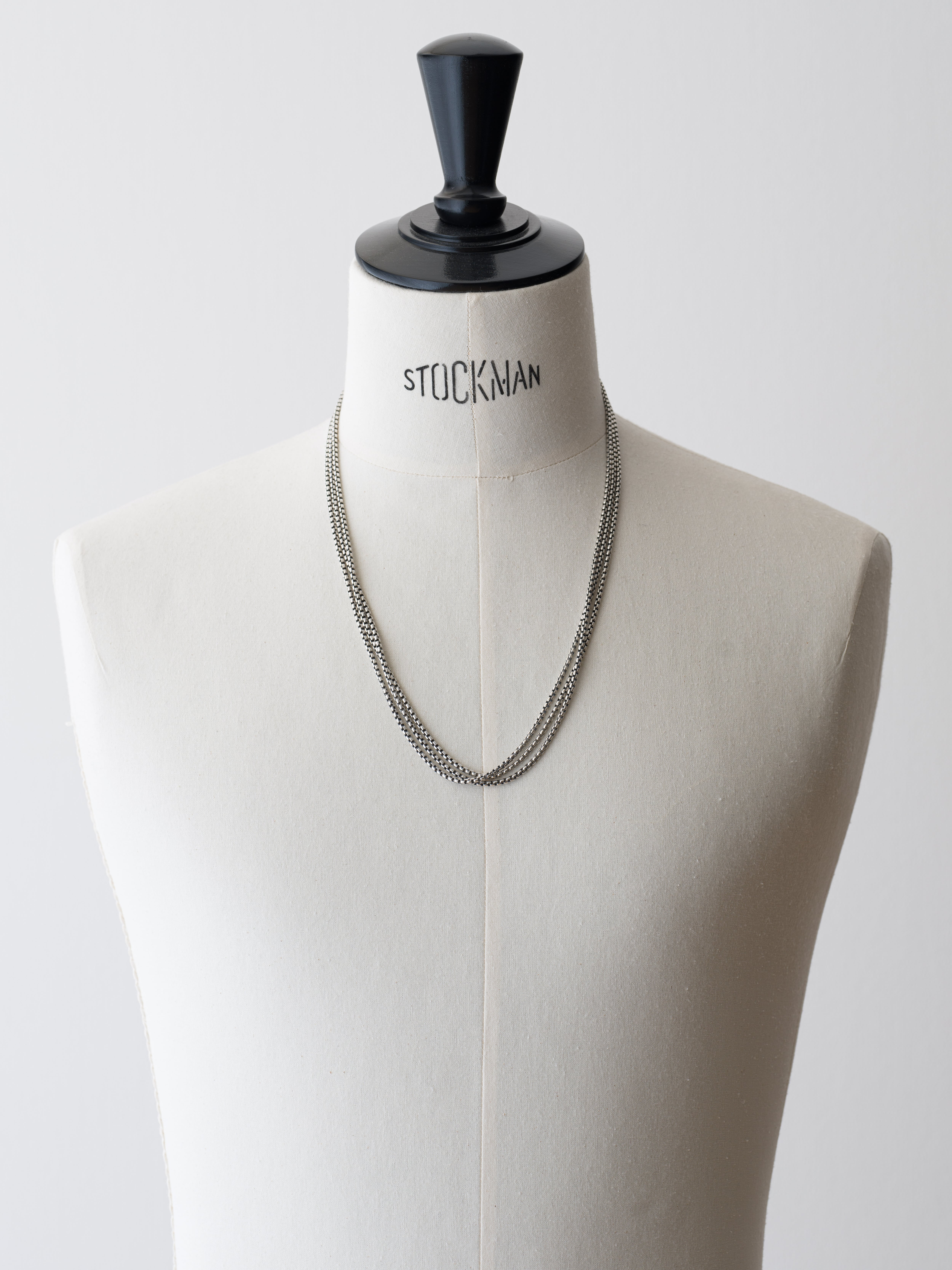 シルバー製のロングネックレス、14Kゴールド製のブレート。