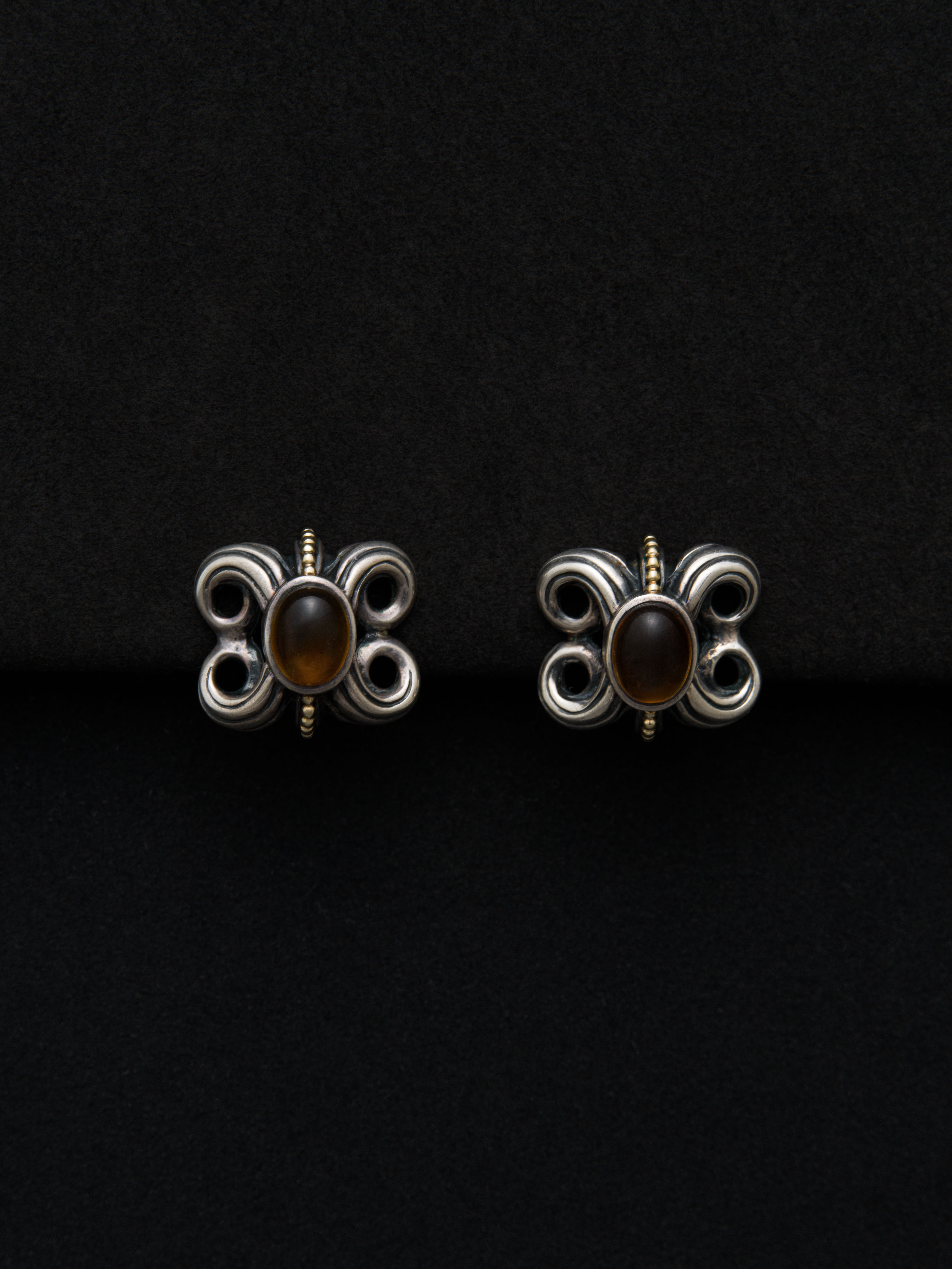 Lagos|ラゴス シルバーと18Kゴールド製のピアス、中央にシトリン。 1977年にSteven Lagosによってアメリカで創業。その後、1984年にブランドの代名詞であるCaviarコレクションを確立しました。イノベーションをブランドのテーマに掲げ、新しいテクノロジーや素材を積極的にジュエリーに取り入れています。 アメリカ製 シルバー925|18Kゴールド|シトリン 1.9cm × 2cm アイテムナンバー|A199 ペア(両耳)販売