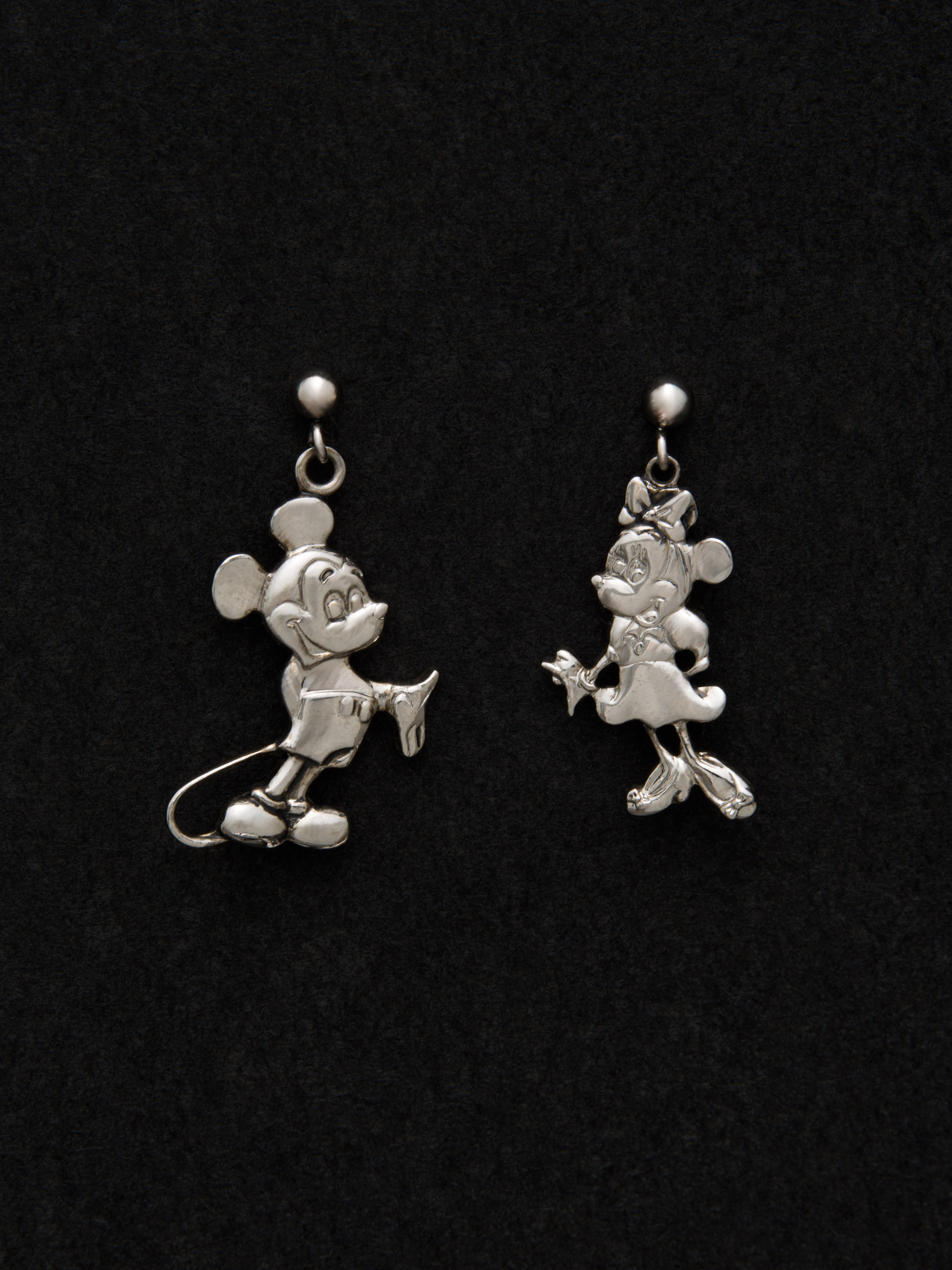シルバー製のピアス、ミッキー、ミニーモチーフ。 アメリカ製 シルバー925 1.4cm × 1.1cm アイテムナンバー|A215 ペア(両耳)販売