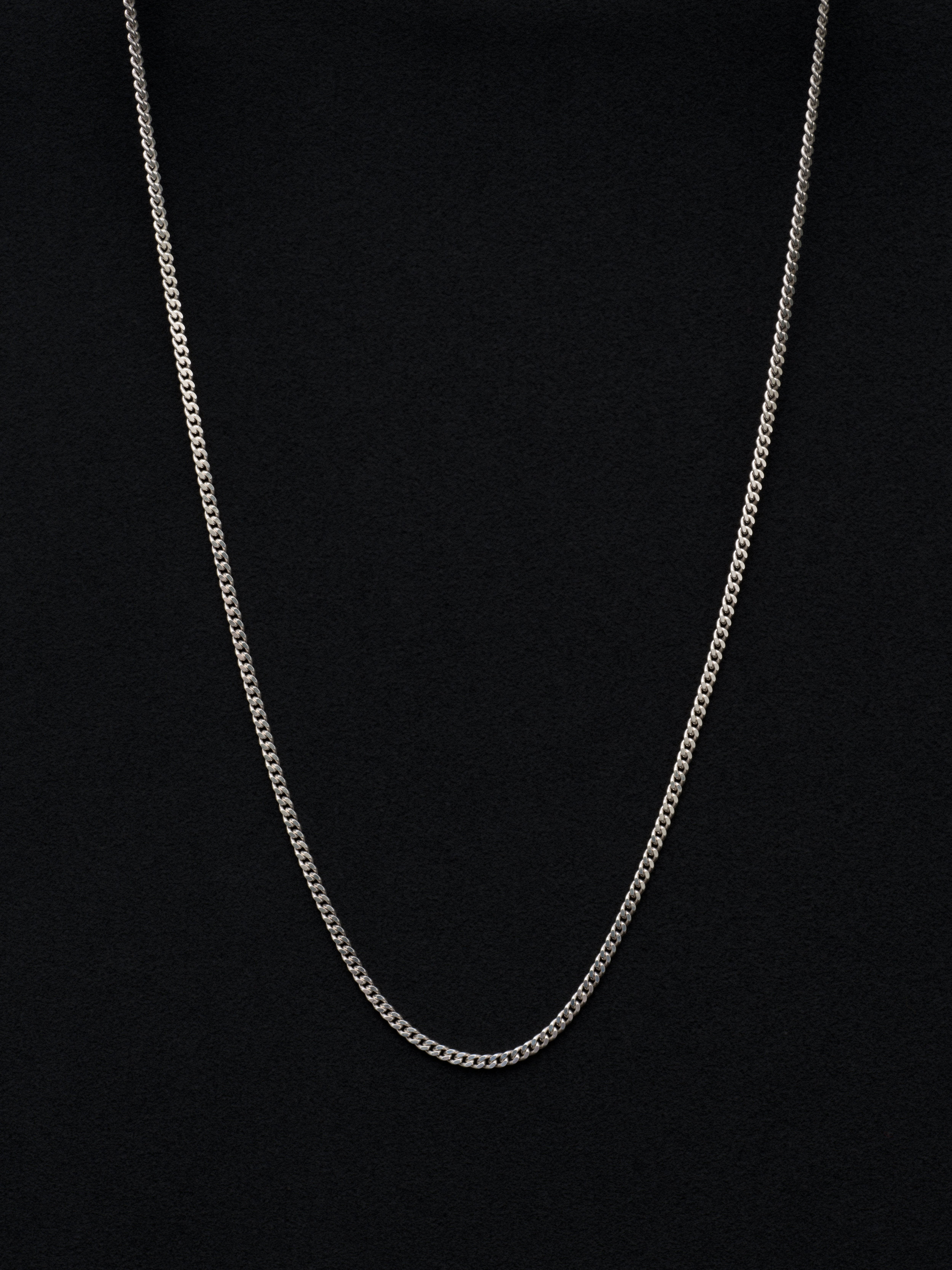 シルバー製のフラットチェーンネックレス。 ドイツ製 シルバー925 全長 : 42cm|幅 : 2mm アイテムナンバー|N441