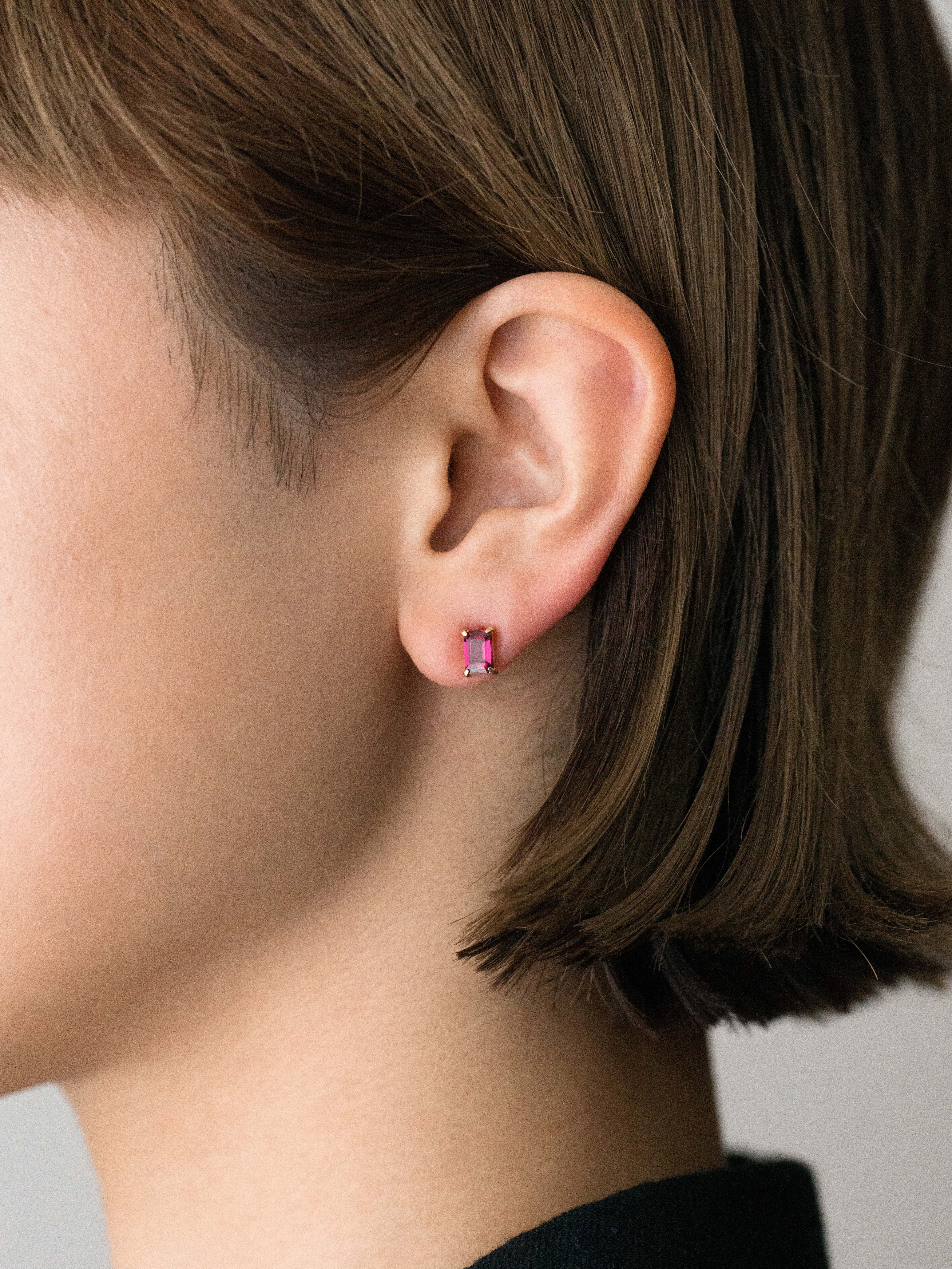 Fabulous Sounds|ファビュラスサウンズ 18Kゴールド製のピアス、中央にガーネットをセッティング。 日本製 18Kゴールド|ガーネット 6.5mm × 5mm アイテムナンバー|OP009 ペア(両耳)販売