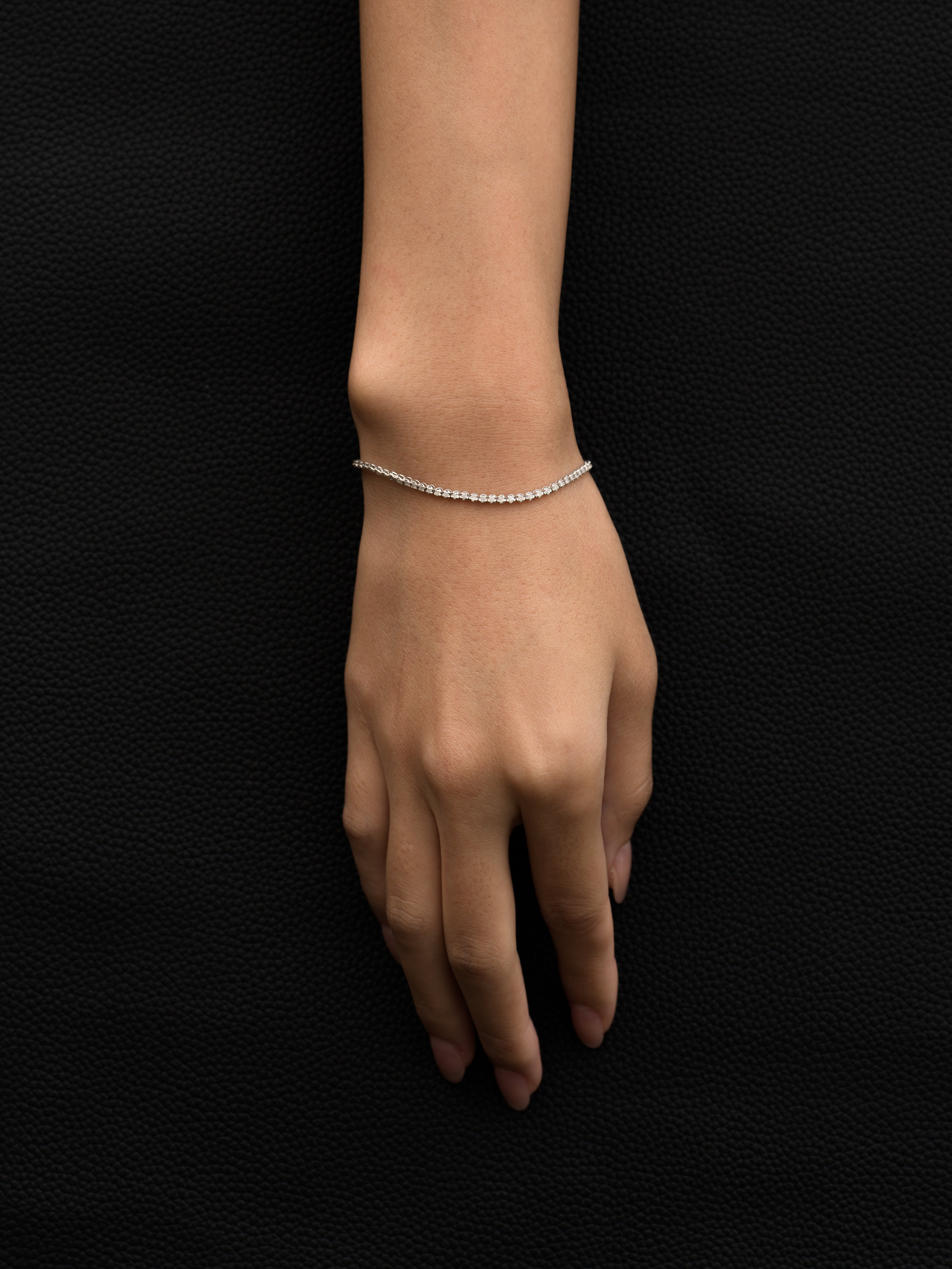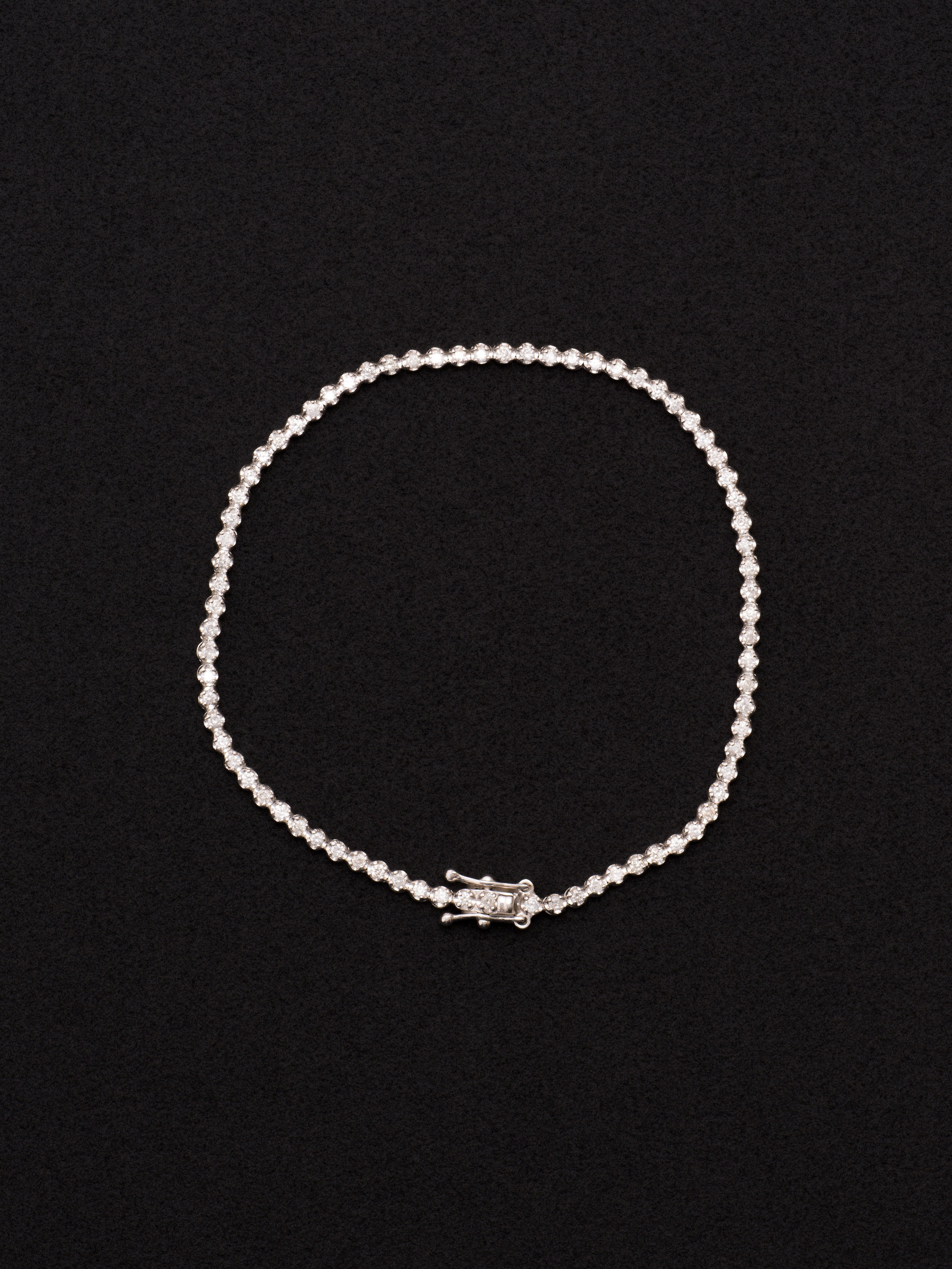 Fabulous Sounds|ファビュラスサウンズ 18Kホワイトゴールド製のテニスブレスレット、合計1カラットのメレダイヤモンド。 日本製 ホワイトゴールド|スノーホワイトダイヤモンド 内周 : 17cm|幅 : 2mm アイテムナンバー|DCB10