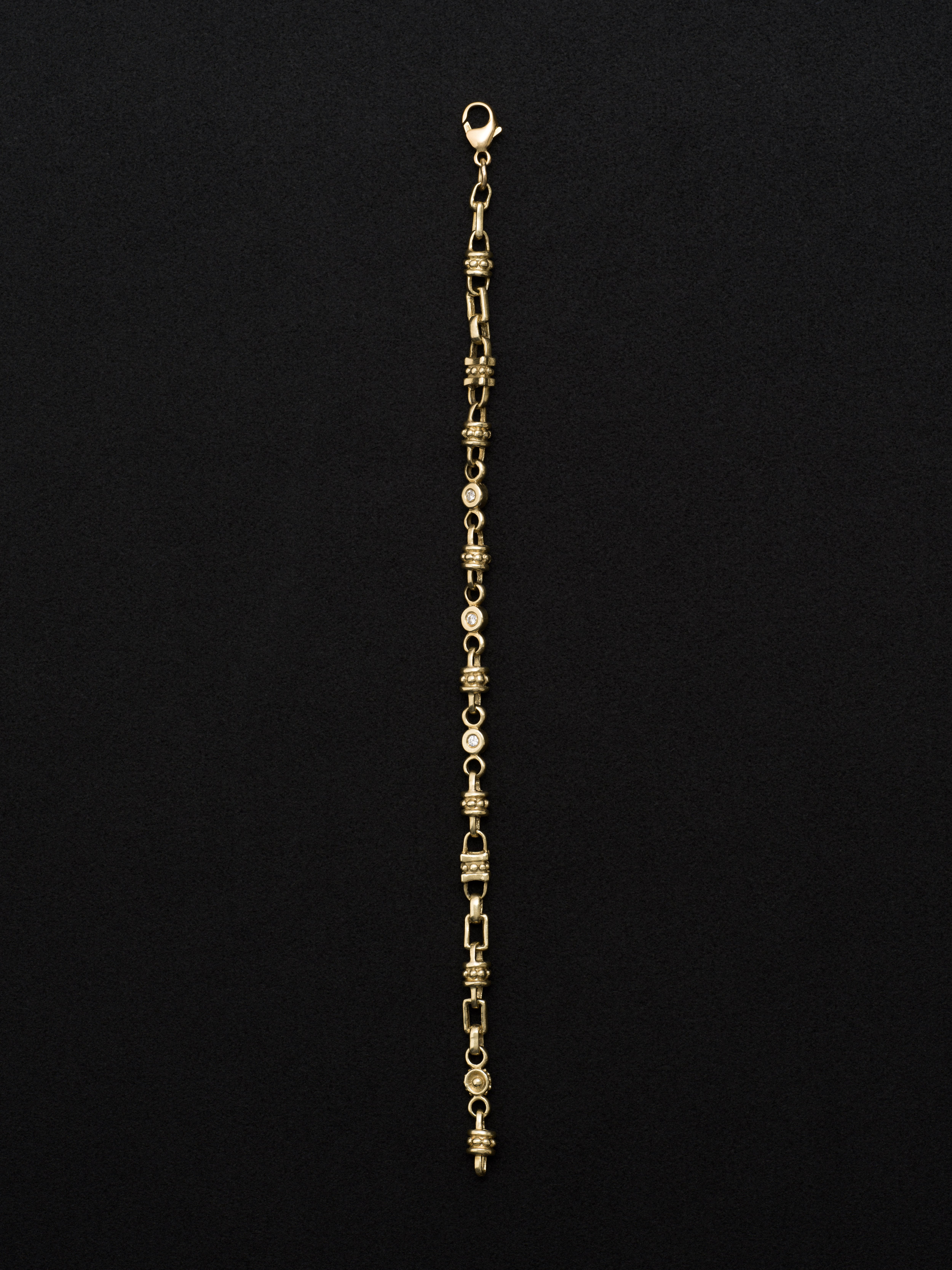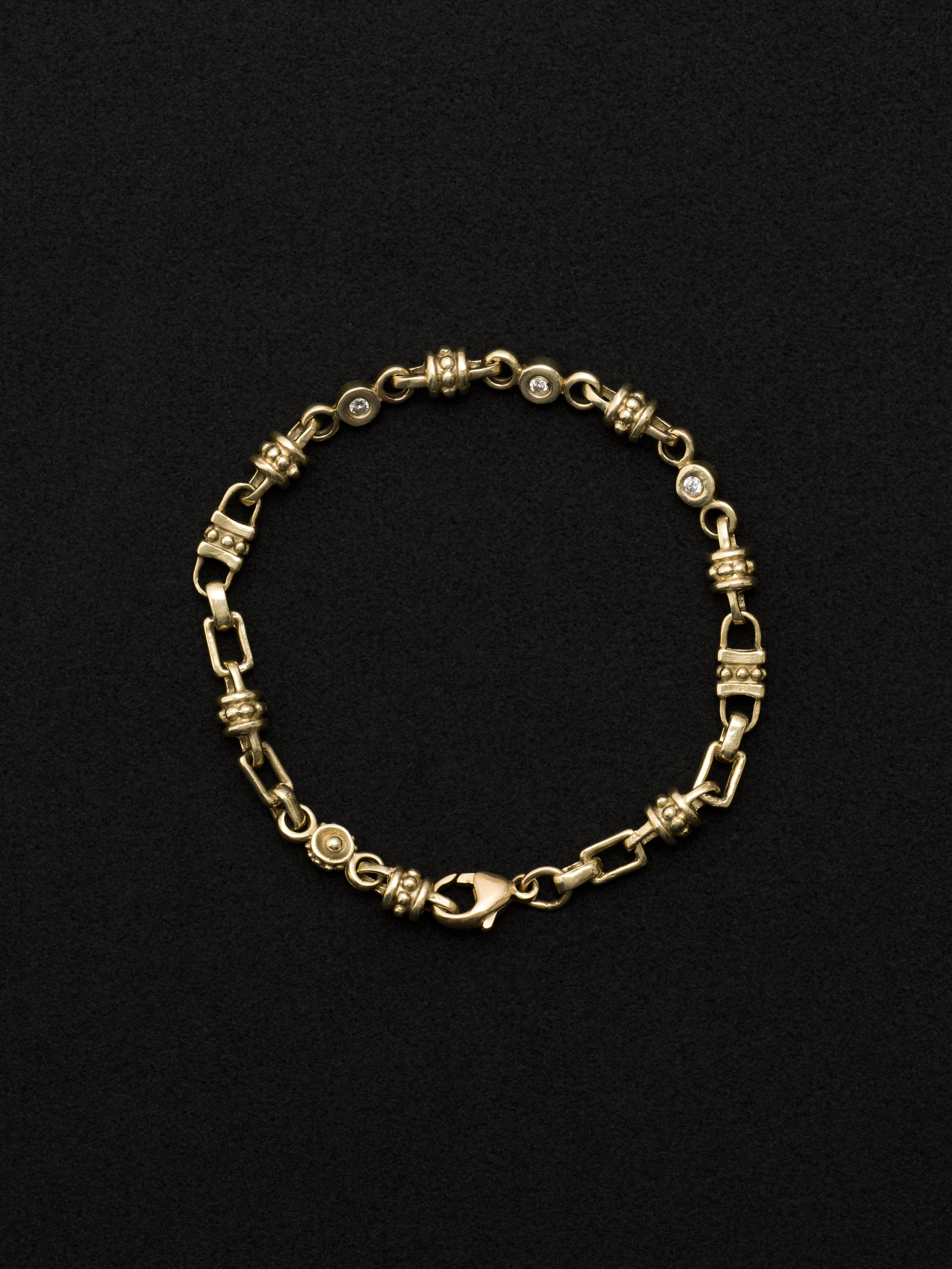 18Kゴールド製のブレスレット、3つのダイヤモンド。 アメリカ製 18Kゴールド|ダイヤモンド 内周 : 16.5cm|幅 : 5mm アイテムナンバー|B1122