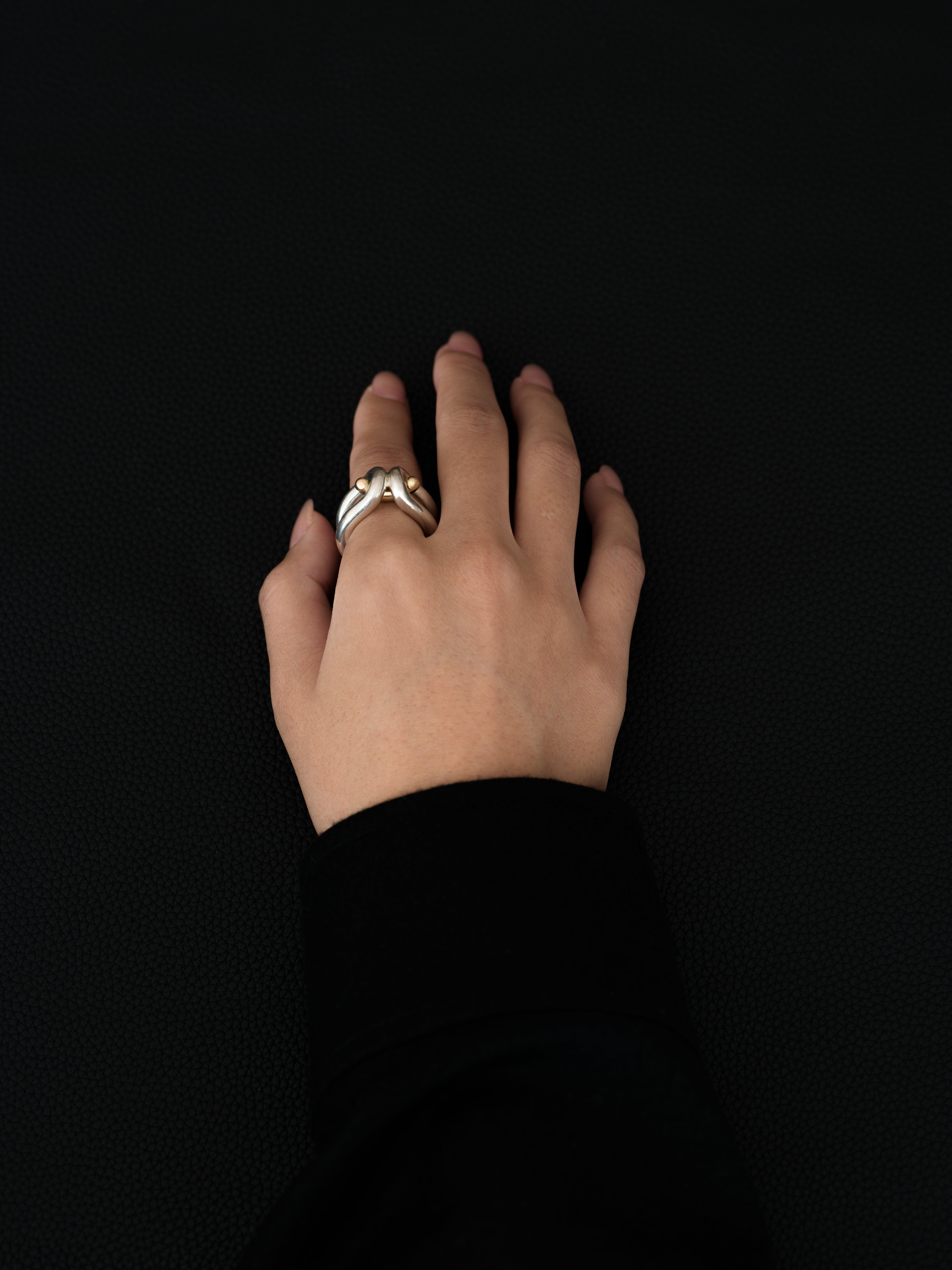 RHODES|ローズ シルバーと18Kゴールド製のリング。 ローズは2021年にファビュラスサウンズのディレクター、吉田量によって設立したブランド。インスピレーションをキーワードに、多彩なデザインのジュエリーを展開。 日本製 シルバー925|18Kゴールド アイテムナンバー|MC033