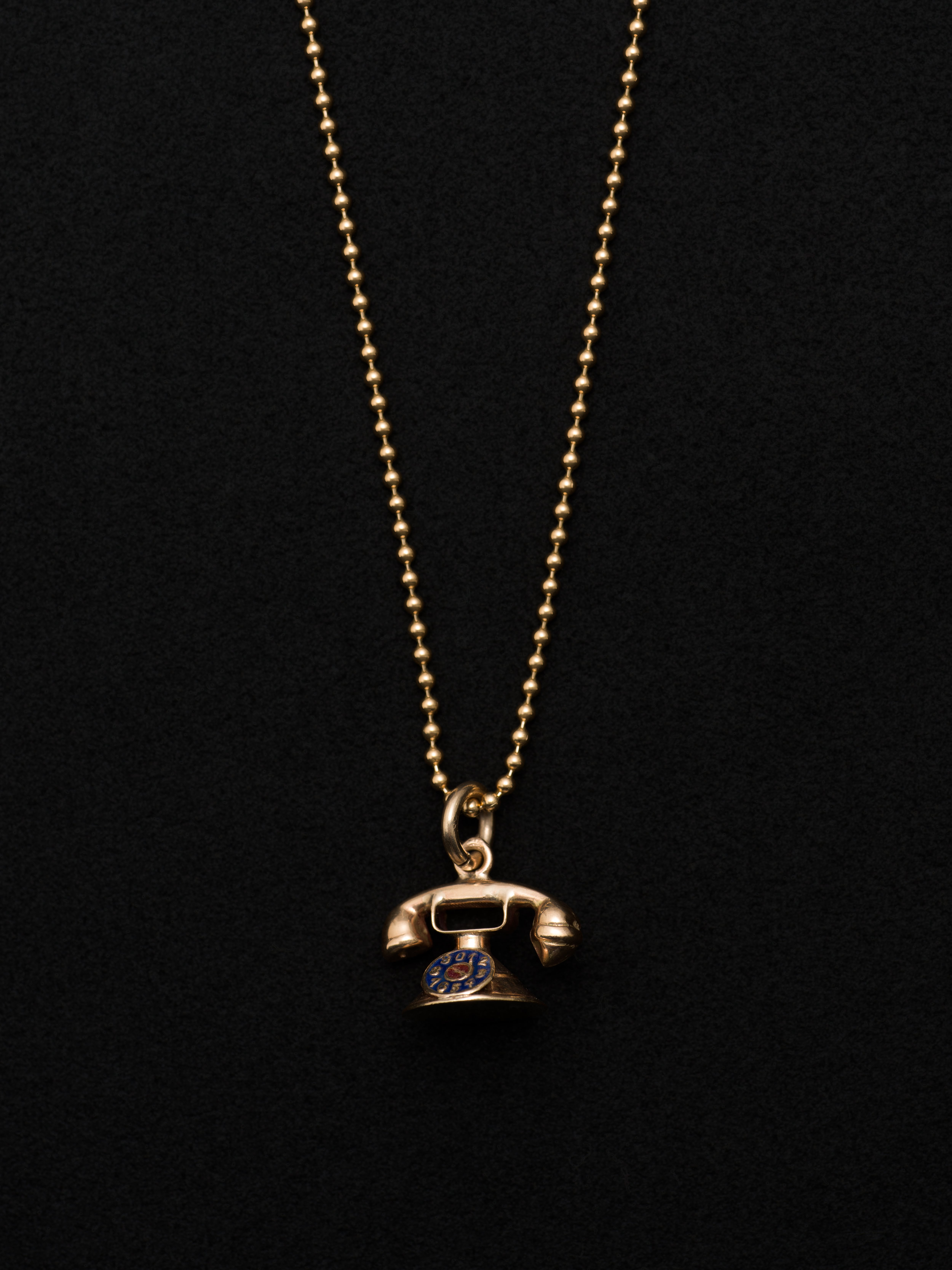 9Kゴールド製のペンダント、電話のモチーフ。 イギリス製 9Kゴールド 1.3cm × 1.5cm アイテムナンバー|N453 チェーンは別売りです。
