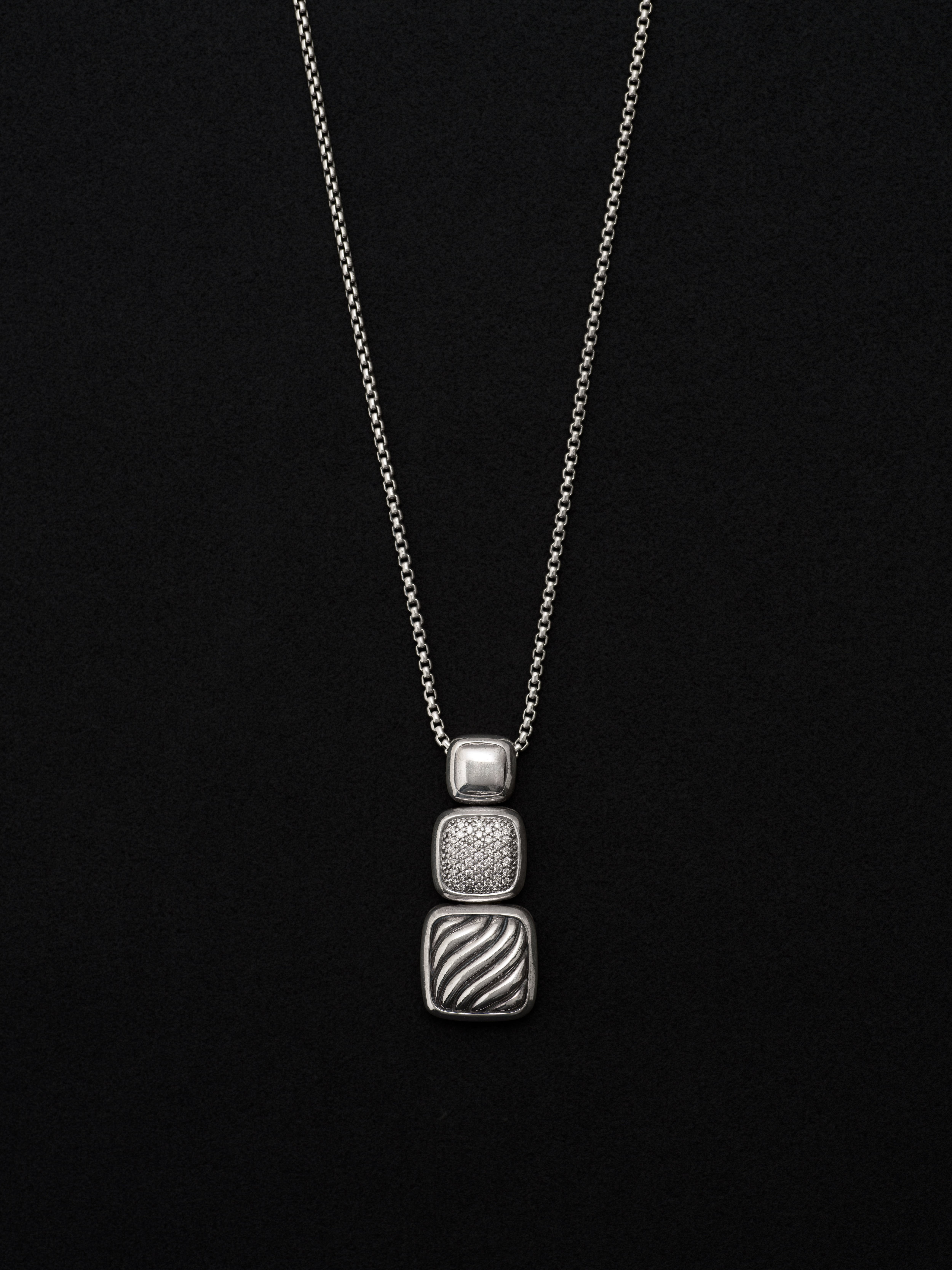 シルバー製のネックレス、ダイヤモンドをパヴェセッティング。