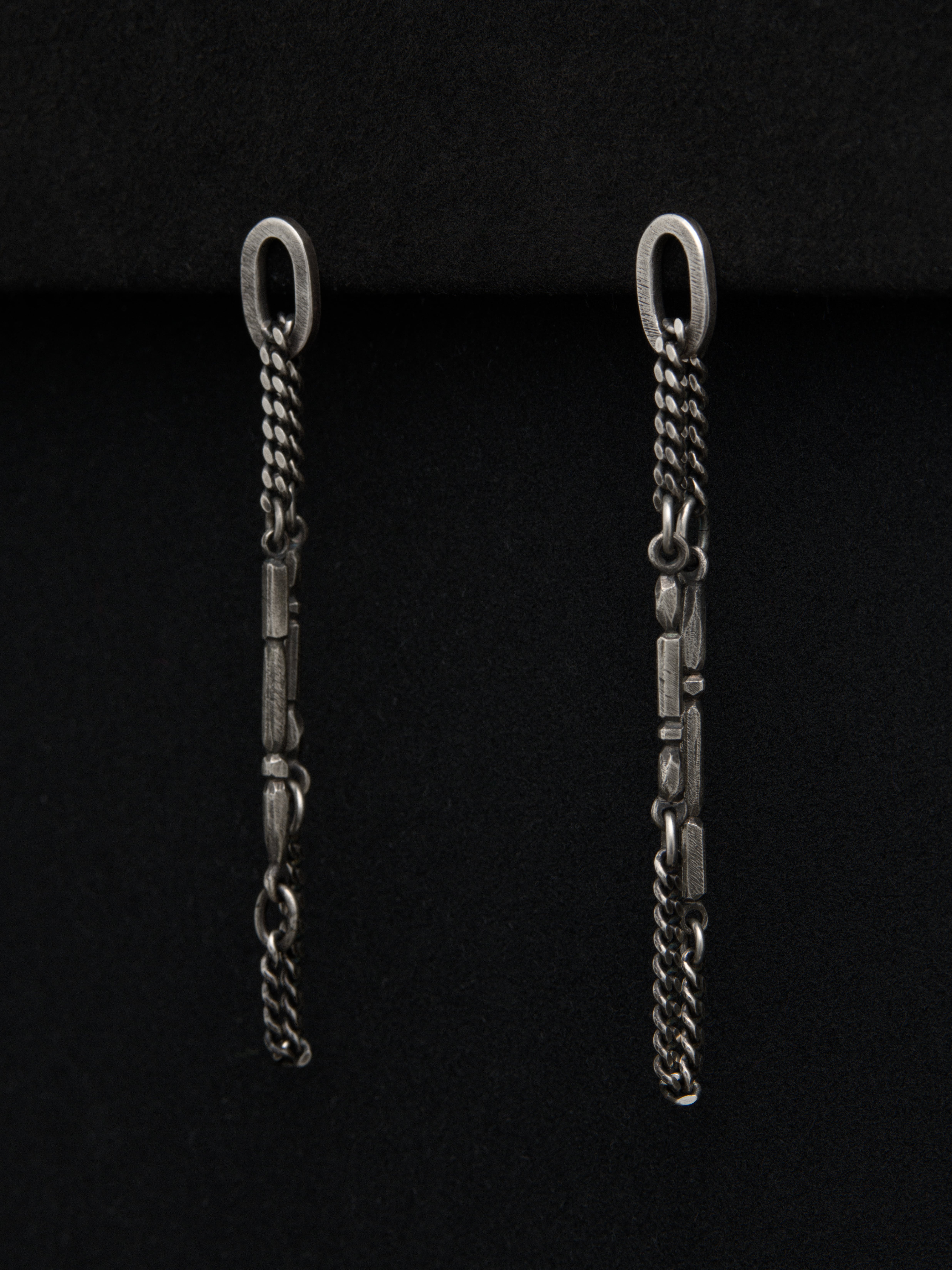 Werkstatt:München|ワークスタットミュンヘン シルバー製のピアス。 1996年にドイツのKlaus Lohmeyerが設立したジュエリーブランド。音楽や哲学からインスピレーションを受けたデザインが特徴で、金属の自然な質感や槌目を生かした作品は全て自社工房で手作業で作られています。 ドイツ製 シルバー925 7.1cm × 2.7mm アイテムナンバー|M4536 ペア(両耳)販売