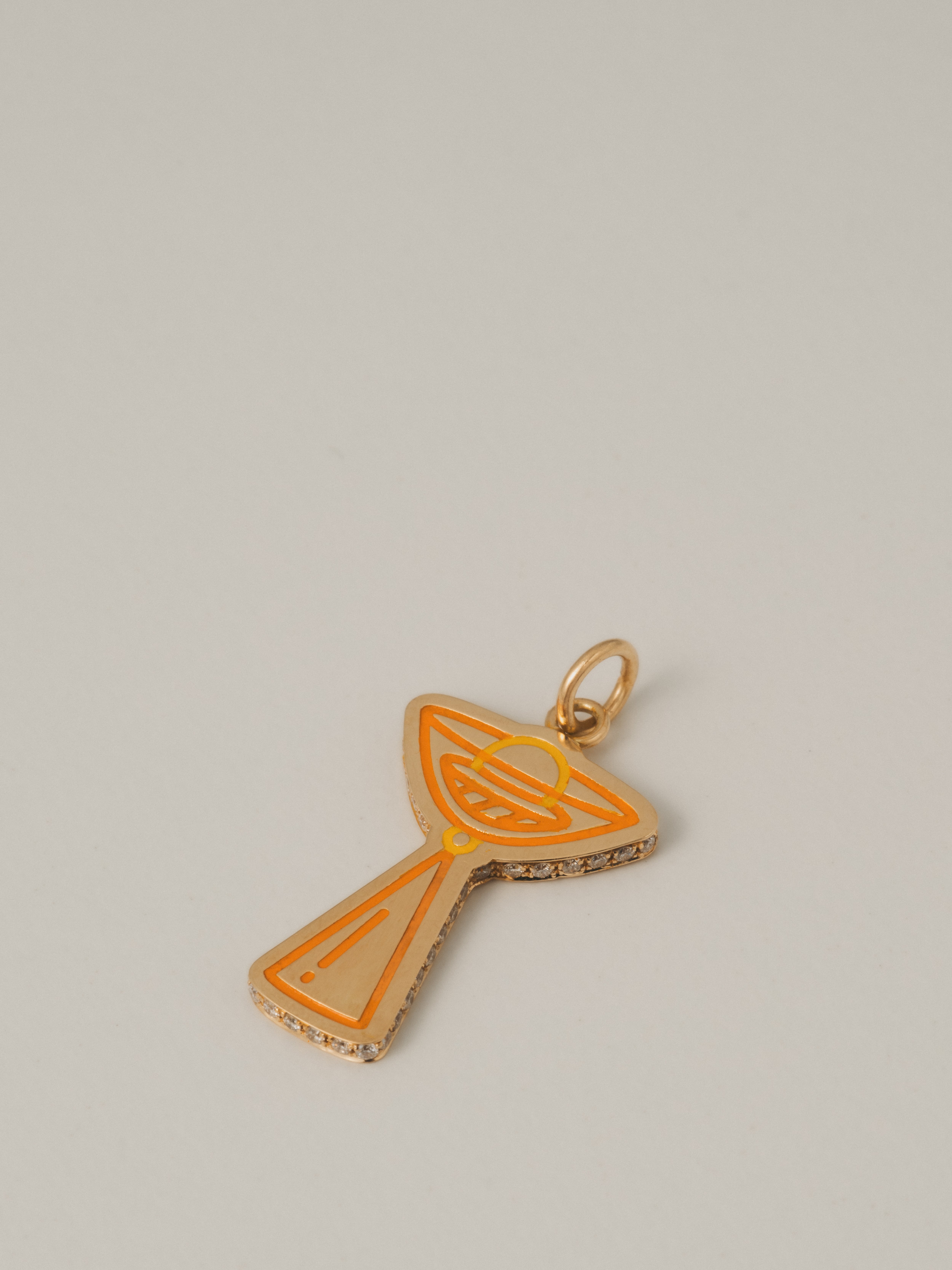 18Kゴールド製のペンダント、側面にダイヤモンドをセッティング。