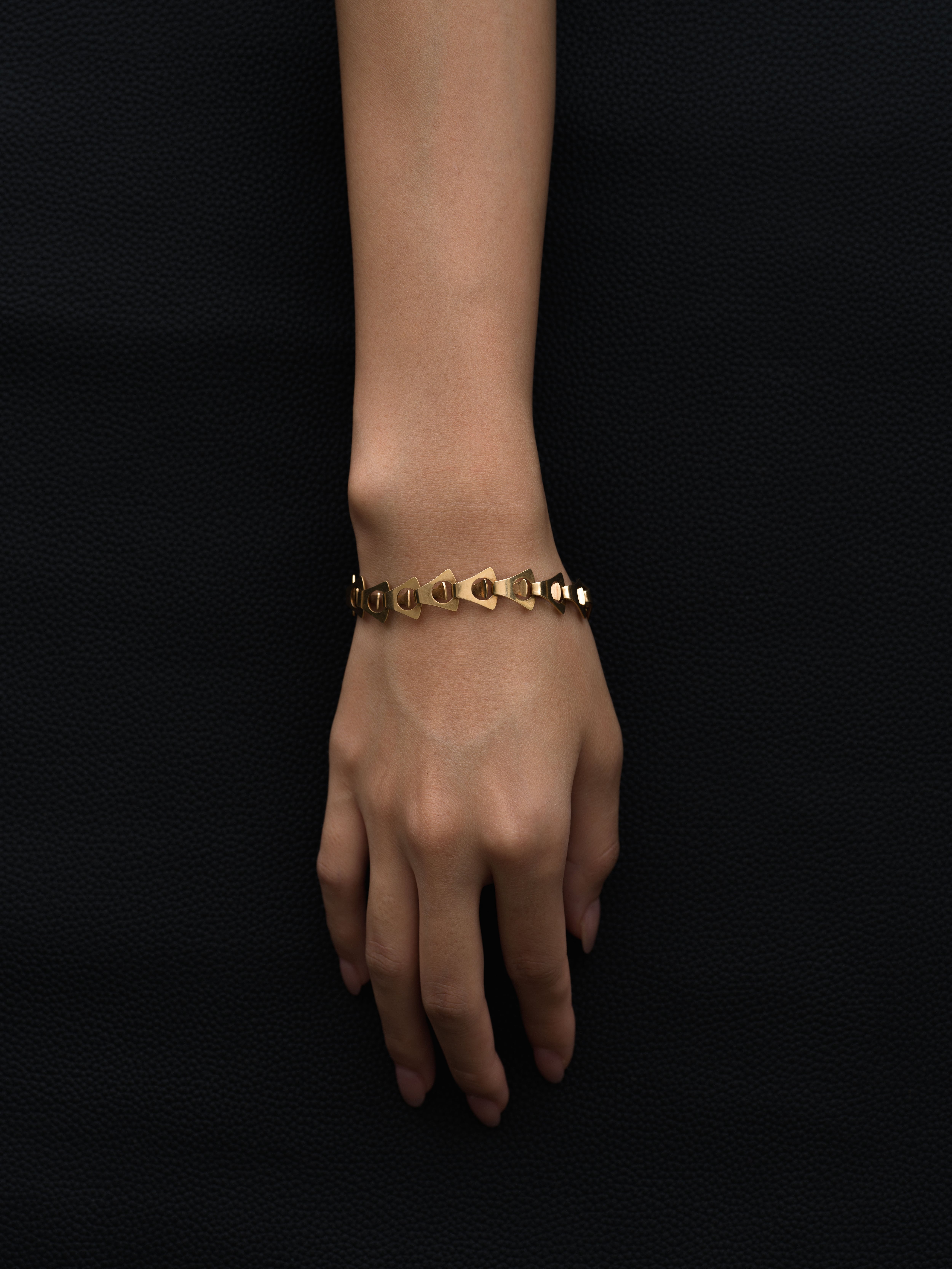 Georg Jensen|ジョージジェンセン 18Kゴールド製のブレスレット。 1904年にデンマークで創業されたジョージジェンセン。銀細工職人であるジョージジェンセン氏によってアトリエが開かれ、現在まで多くの有名デザイナーを輩出、20世紀の北欧デザインを牽引した世界的なブランドです。 デンマーク製 18Kゴールド 内周 : 18cm|幅 : 1.5cm アイテムナンバー|B1247