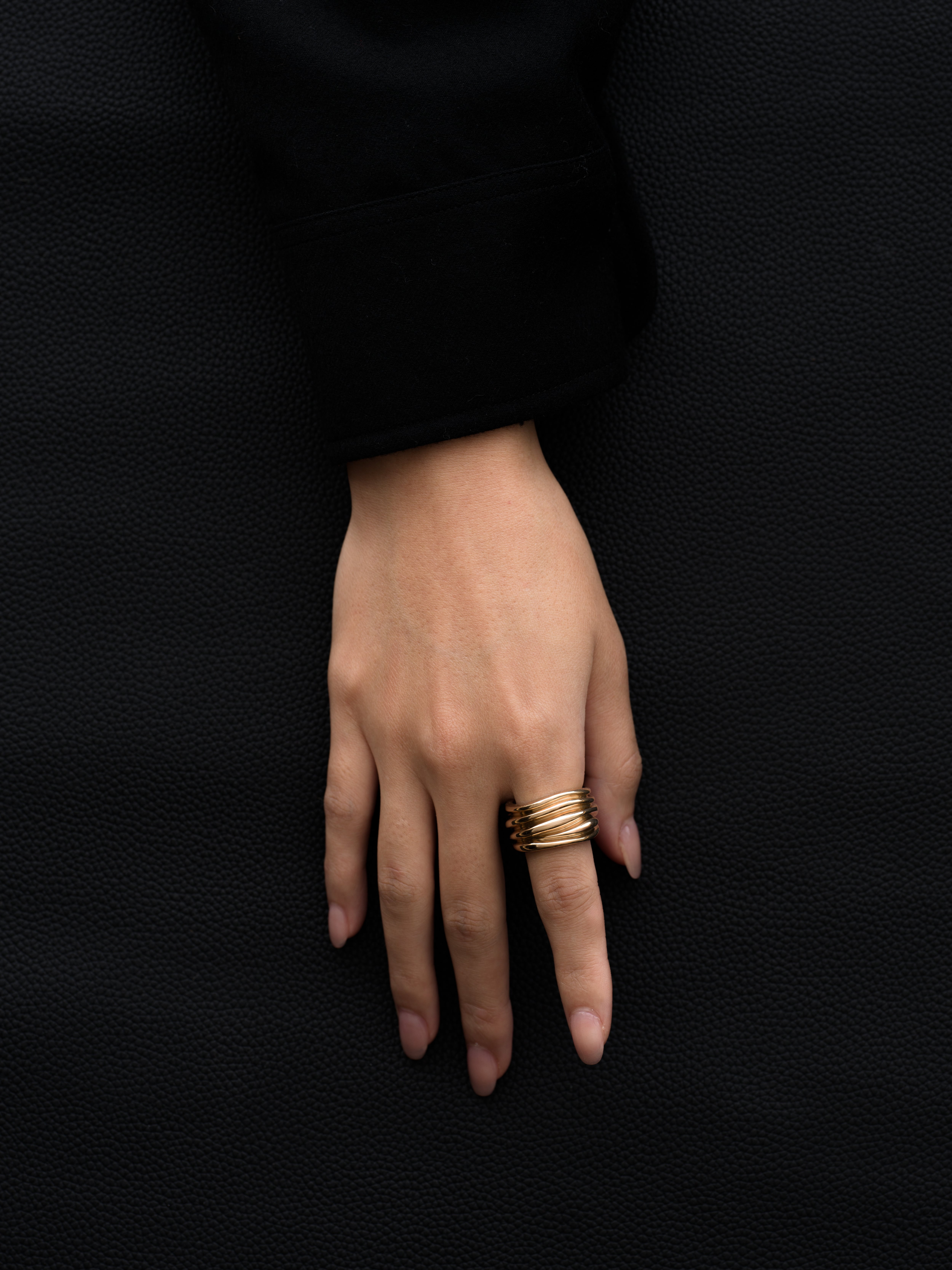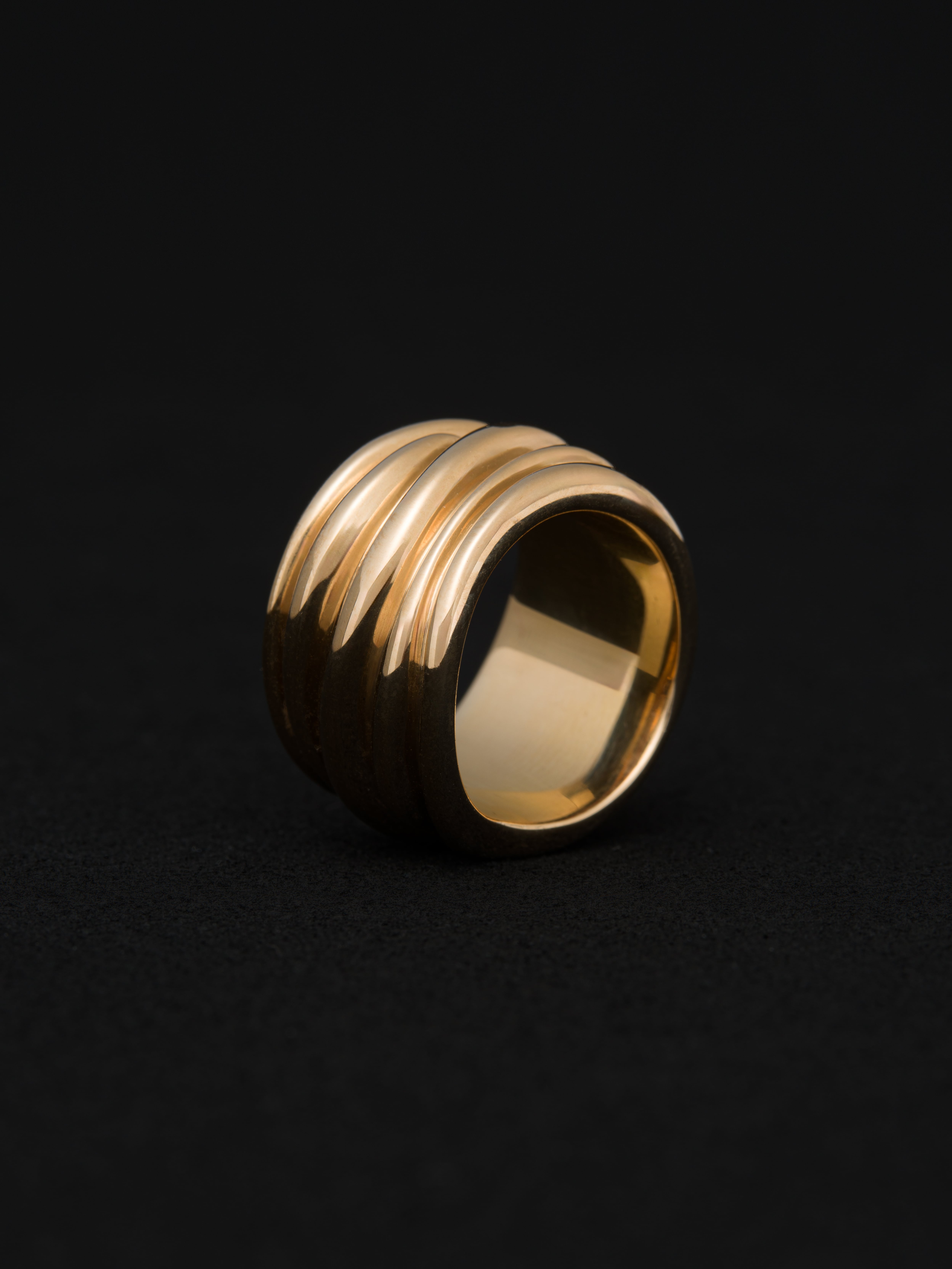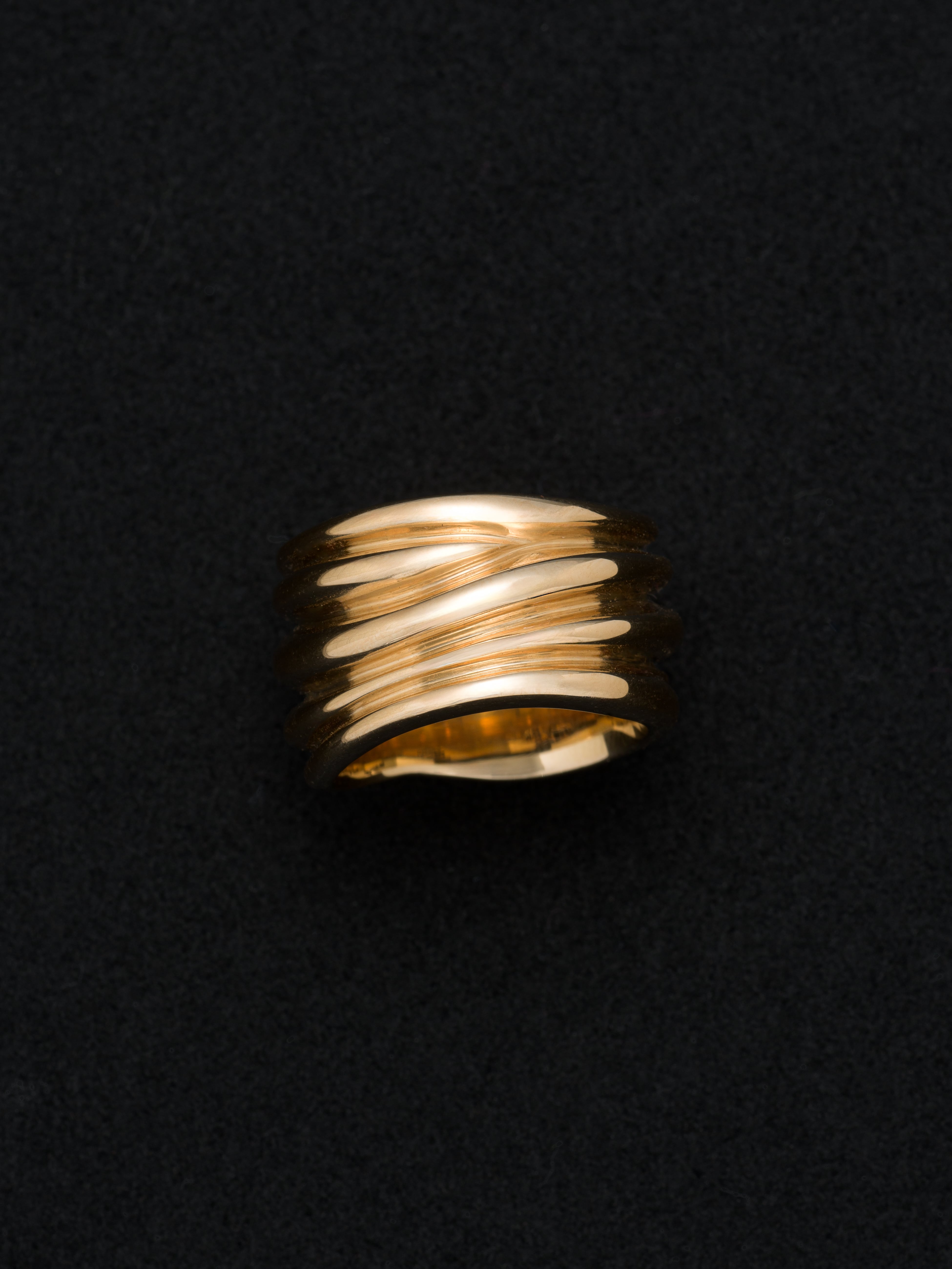 Claus Georg Melcher|クラウス・ゲオルグ・メルヒャー 14Kゴールド製のバンドリング。 デンマークのジュエリーデザイナー、クラウス・ゲオルグ・メルヒャー。1970年代から活動し、モダンで有機的なデザインが特徴です。波状のリングや独創的なネックレスは、デンマークデザインの美学を体現しています。 デンマーク製 14Kゴールド 幅 : 1.4cm|サイズ : JP 16 アイテムナンバー|R2150
