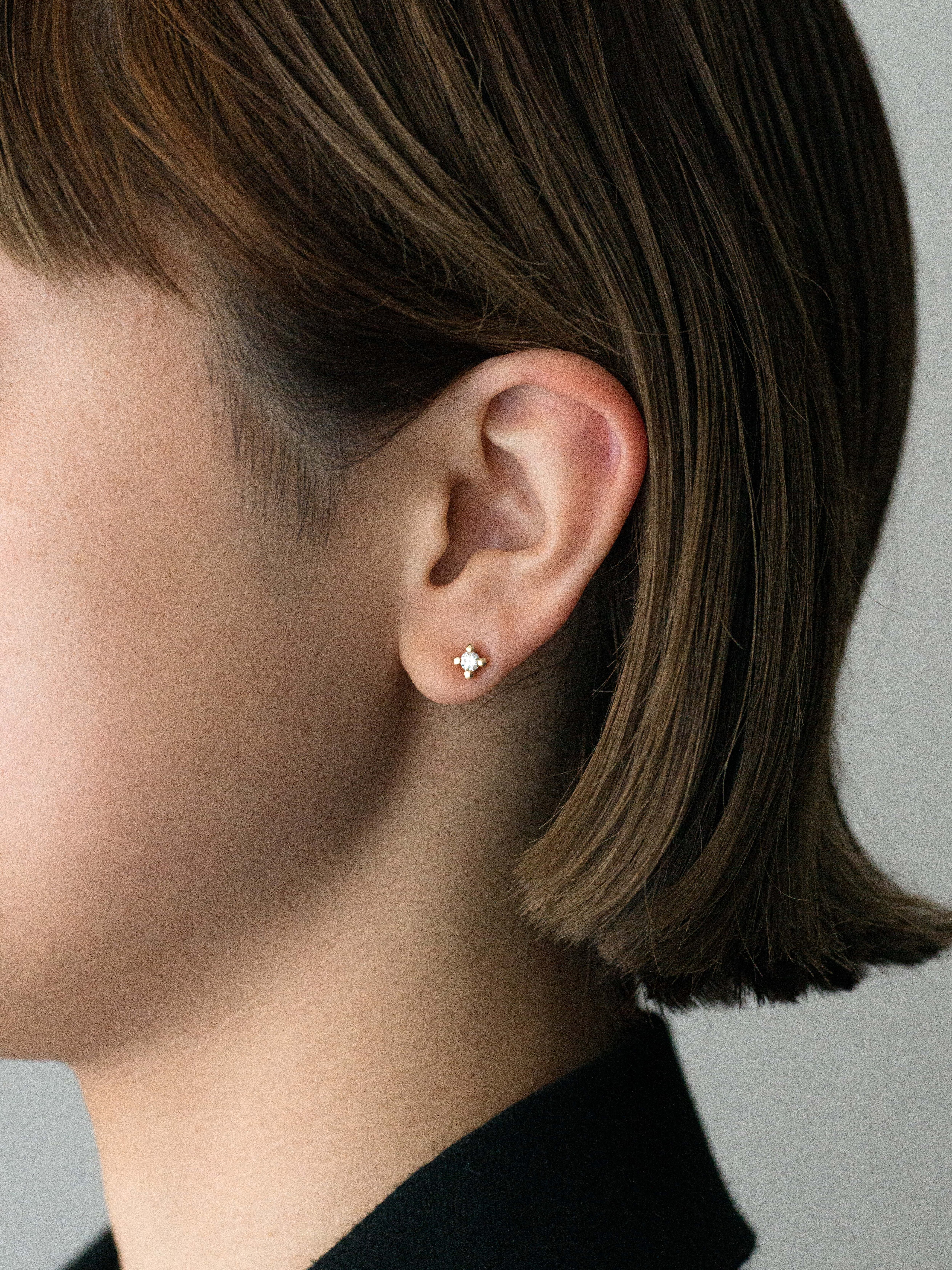 14Kゴールド製のピアス、トップにダイヤモンドをセッティング。 デンマーク製 14Kゴールド|ダイヤモンド 9mm × 9mm アイテムナンバー|A243 ペア(両耳)販売