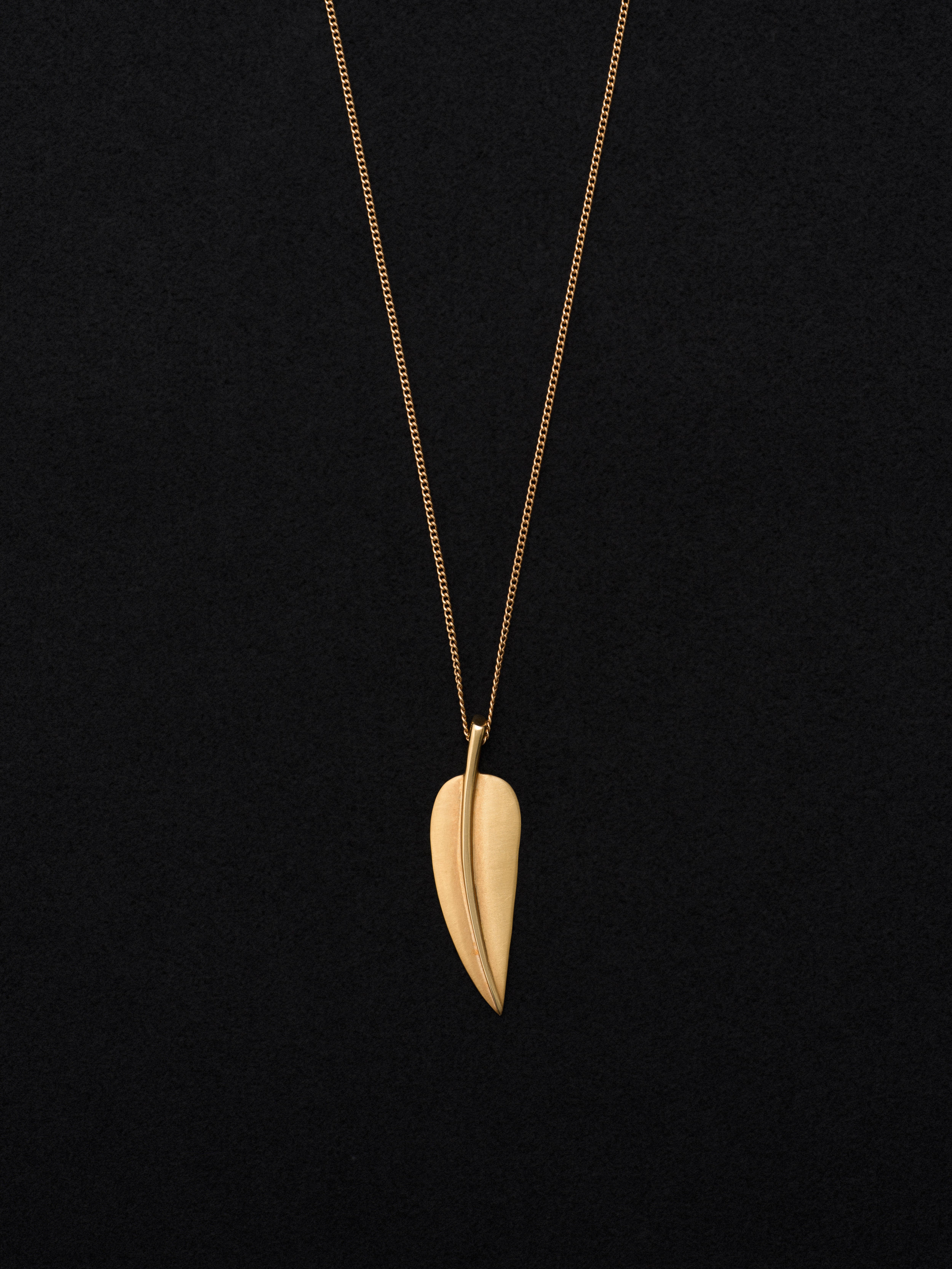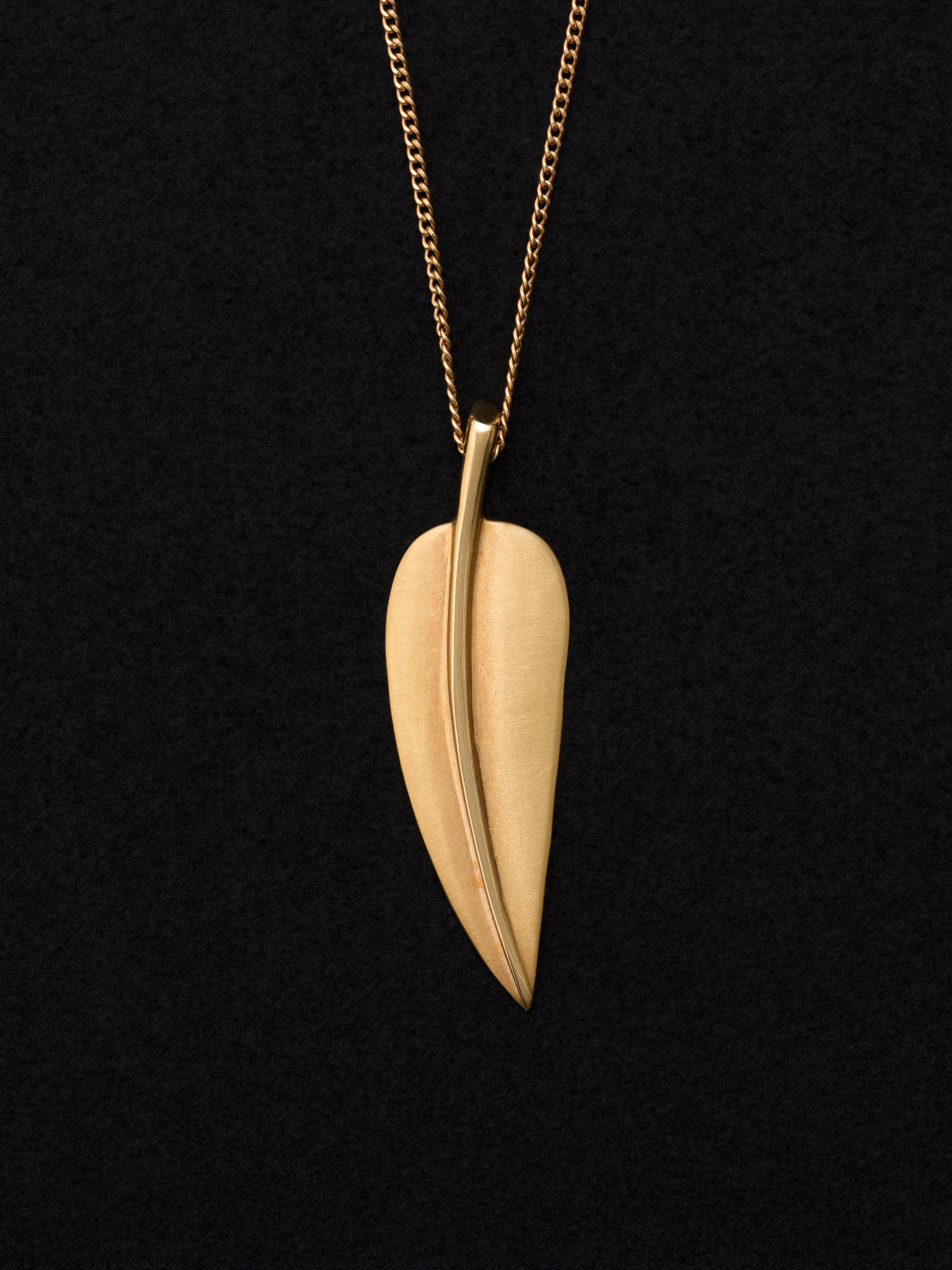 Tiffany & Co.〈ティファニー〉の18Kゴールド製ネックレス、フェザーモチーフ、ジュエリーデザイナーAngela Cummingsによるデザイン。 アメリカ製 18Kゴールド ペンダント : 3.5cm × 1cm|ネックレス : 44cm アイテムナンバー|N540
