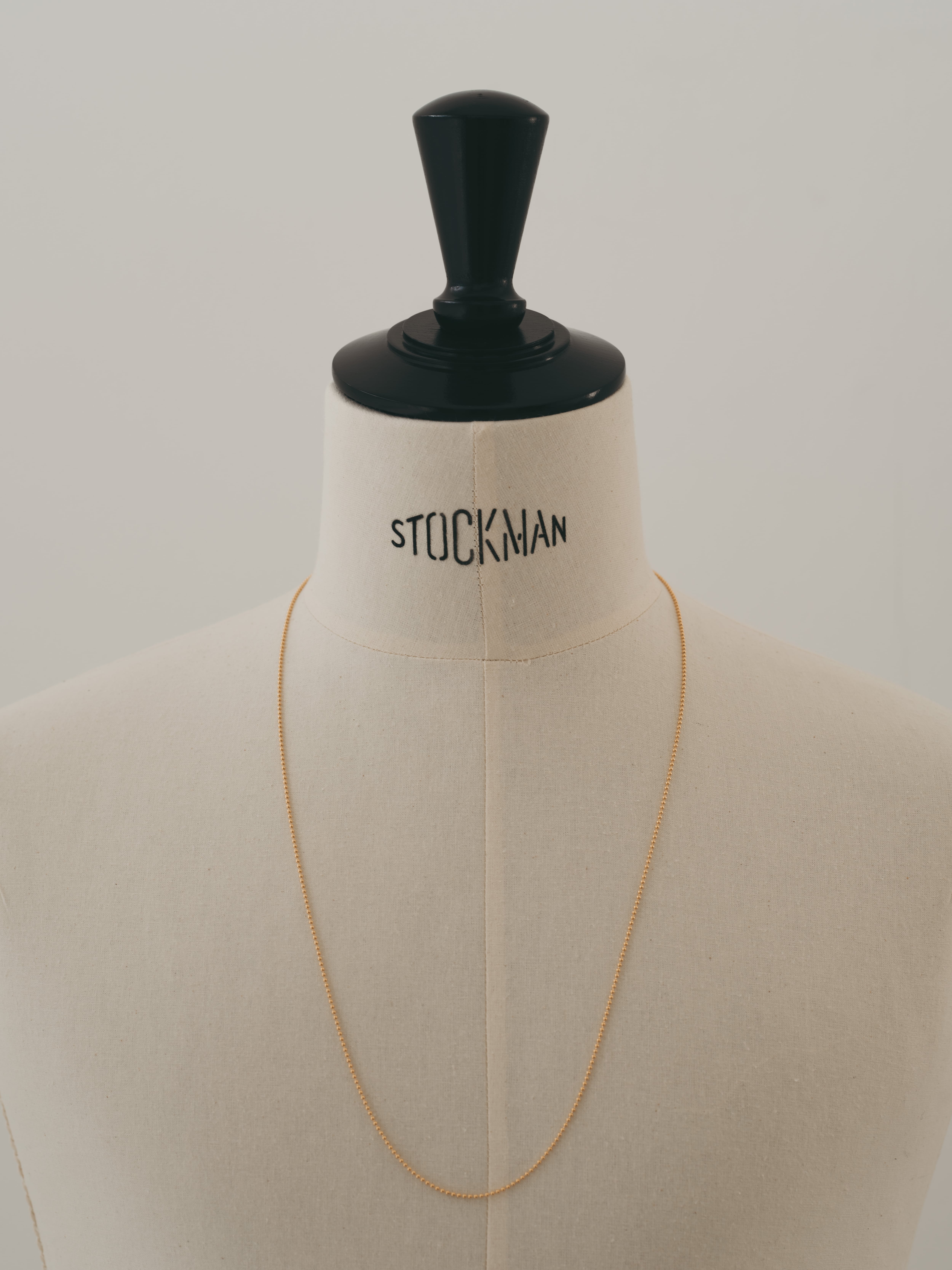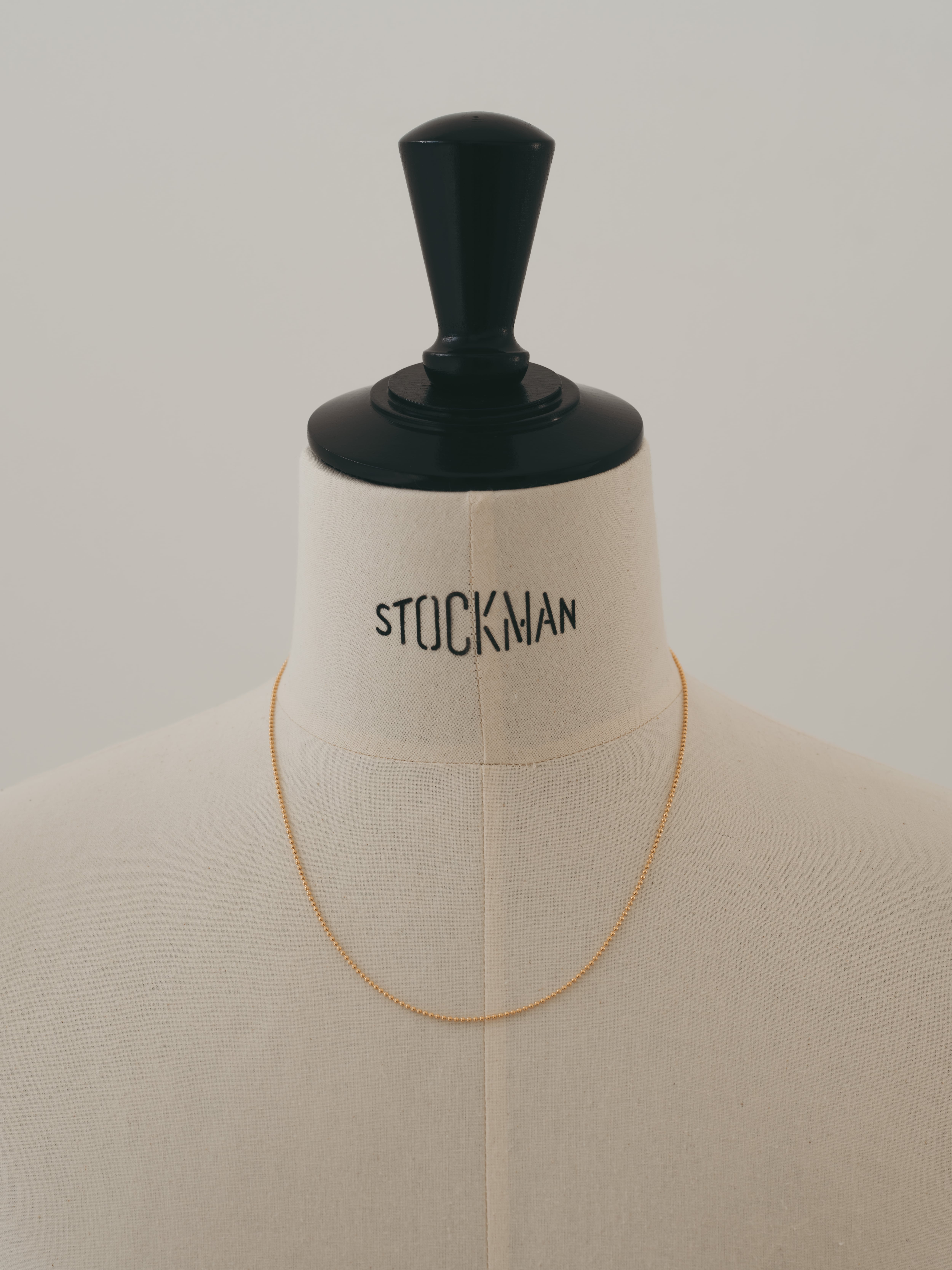 RHODES|ローズ 18Kゴールド製のボールチェーンネックレス。 ローズは2021年にファビュラスサウンズのディレクター、吉田量によって設立したブランド。インスピレーションをキーワードに、多彩なデザインのジュエリーを展開。 日本製 18Kゴールド アイテムナンバー|RHODES067